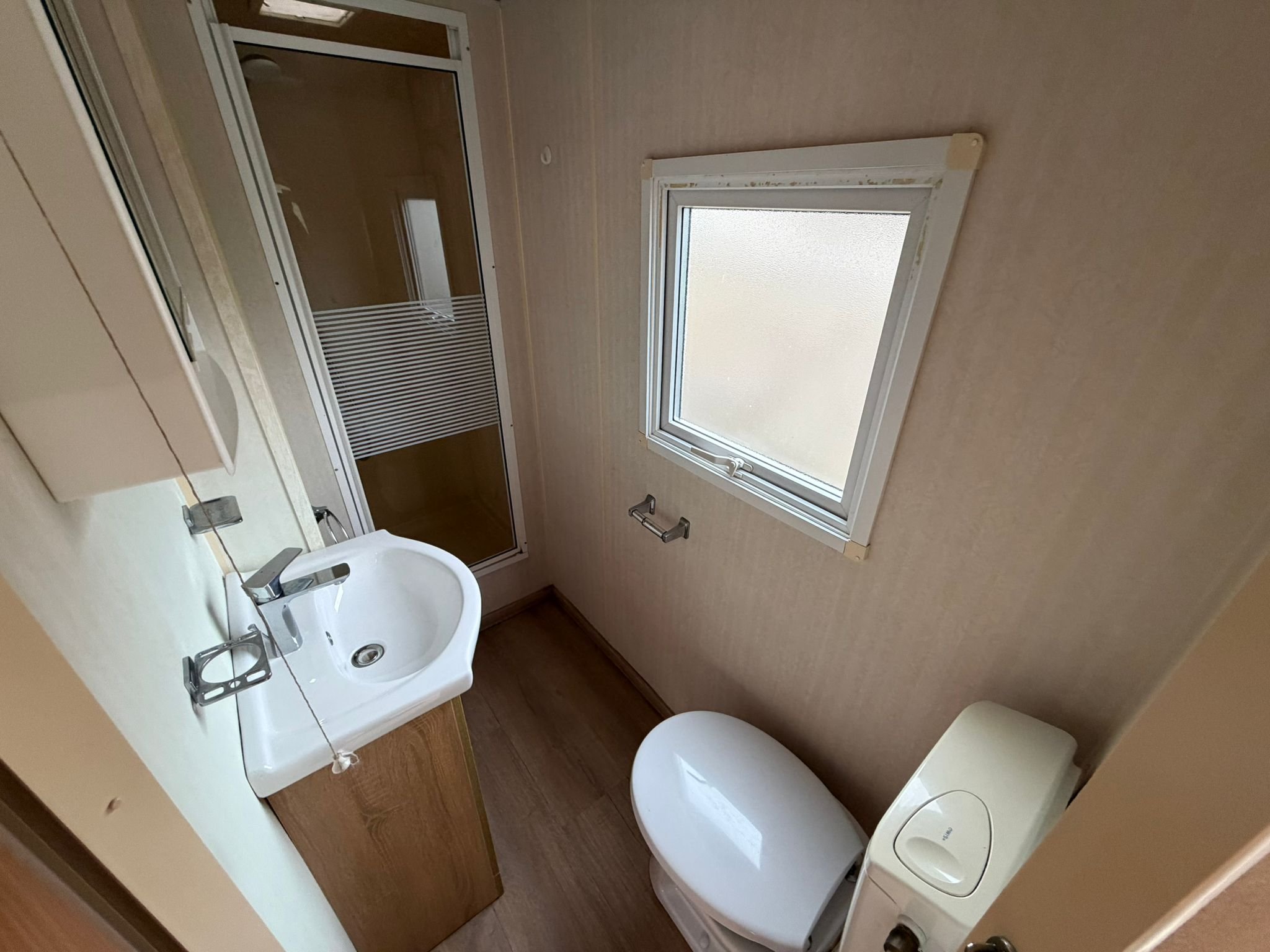 - Koupelna se sprchovým koutem, umyvadlem a WC